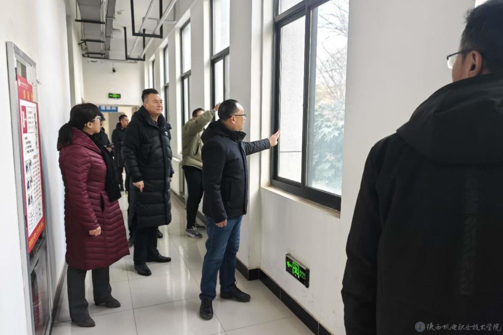 检查组一行在实训楼检查