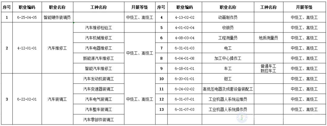 我校获批13个技能等级认定职业(工种),详情如下表: