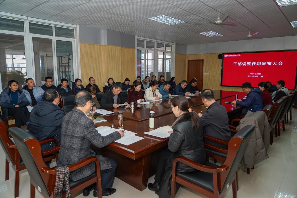 2025年2月21日下午,学校党委在蟠龙校区图书馆二楼会议室组织召开干部调整任职宣布大会。校领导、相关部门科级以上干部、室主任、系主任参加会议。会议由党委副书记、院长向纪明主持。