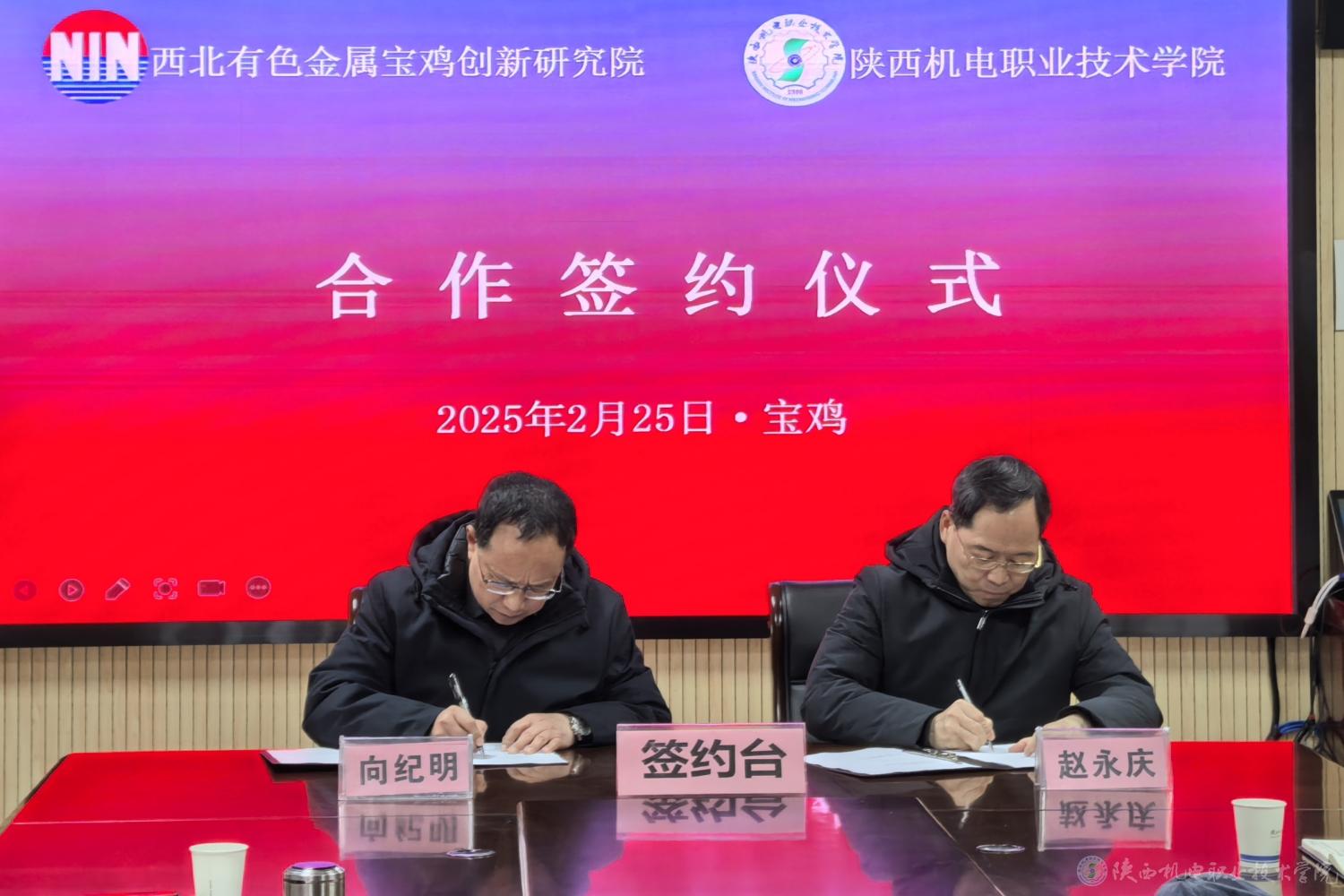 2月25日,BEAT365官网与西北有色金属宝鸡创新研究院合作签约仪式在二楼会议室举行。西北有色金属宝鸡创新研究院院长赵永庆、副院长肖松涛,BEAT365官网党委书记伊逊智,党委副书记、院长向纪明出席。签约仪式由校企合作处处长白娟娟主持。