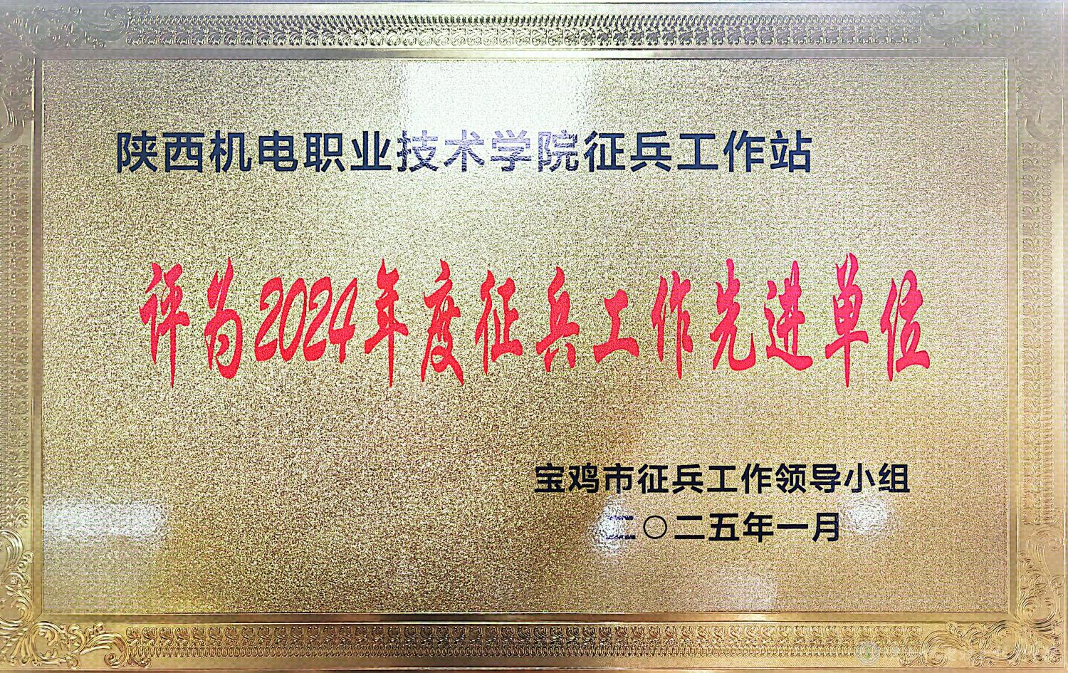 近日,BEAT365官网被宝鸡市征兵工作领导小组,中共宝鸡市金台区委、金台区人民政府、金台区人民武装部评为“2024年度征兵工作先进单位”。此次奖项是我校第二次同时荣获宝鸡市和金台区两级“征兵工作先进单位”称号。