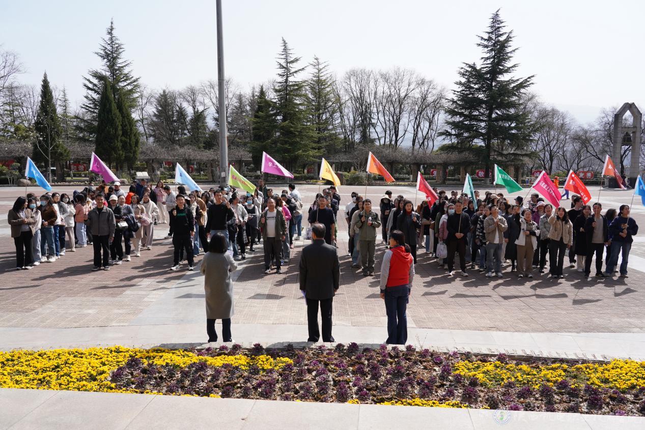 15时整,在伊逊智鸣响气喇叭的指令下,300余人的队伍如彩色溪流漫入春山。老师们纷纷感慨:“行走在花影扶疏间,工作的疲惫都化作了前进的动力。”