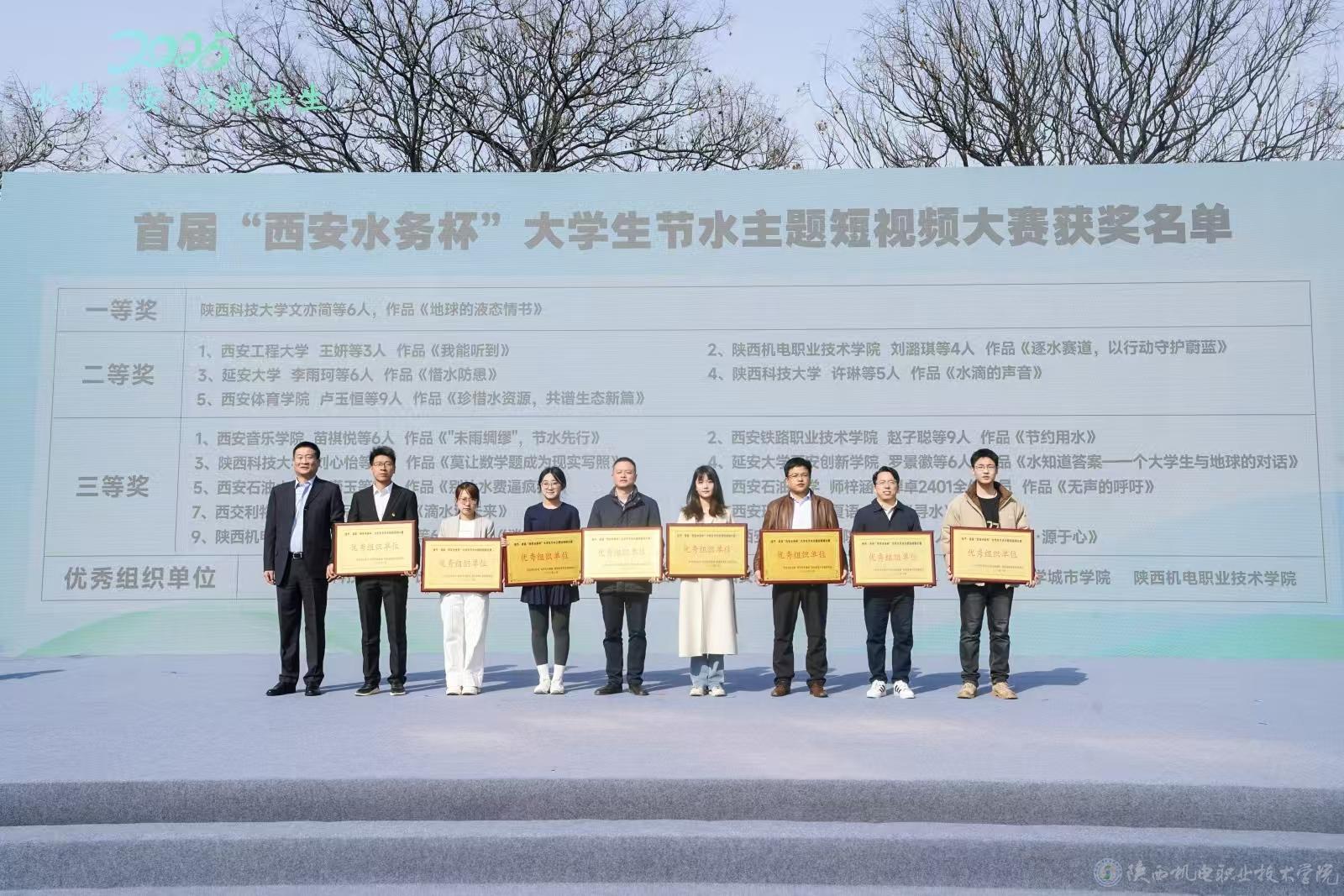 3月22日首届“西安水务杯”大学生节水主题短视频大赛圆满落幕,本次比赛共有37所本专科高校共同参赛,参赛作品335部,BEAT365官网在本次比赛中表现优异,荣获“优秀组织单位”称号,实现历史性突破!我校数字经管学院数字媒体专业刘潞琪、李敏嘉、关永菲、屈依凡团队制作的《逐水赛道,以行动守护蔚蓝》以全省第二名的好成绩荣获二等奖;田思雨、任欣怡、梁家仪、刘馨怡、张姗姗、张嘉豪团队制作的《淡水妈妈再爱我一次》获三等奖,充分展现了我校师生的卓越风采和综合实力。