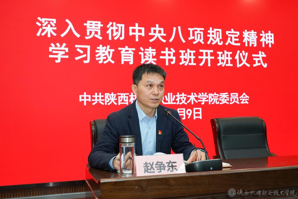 会上,党委委员、院长助理、组织部部长赵争东宣读了《学校党委关于举办深入贯彻中央八项规定精神学习教育读书班的通知》,对学习教育读书班的具体事项进行了安排部署。