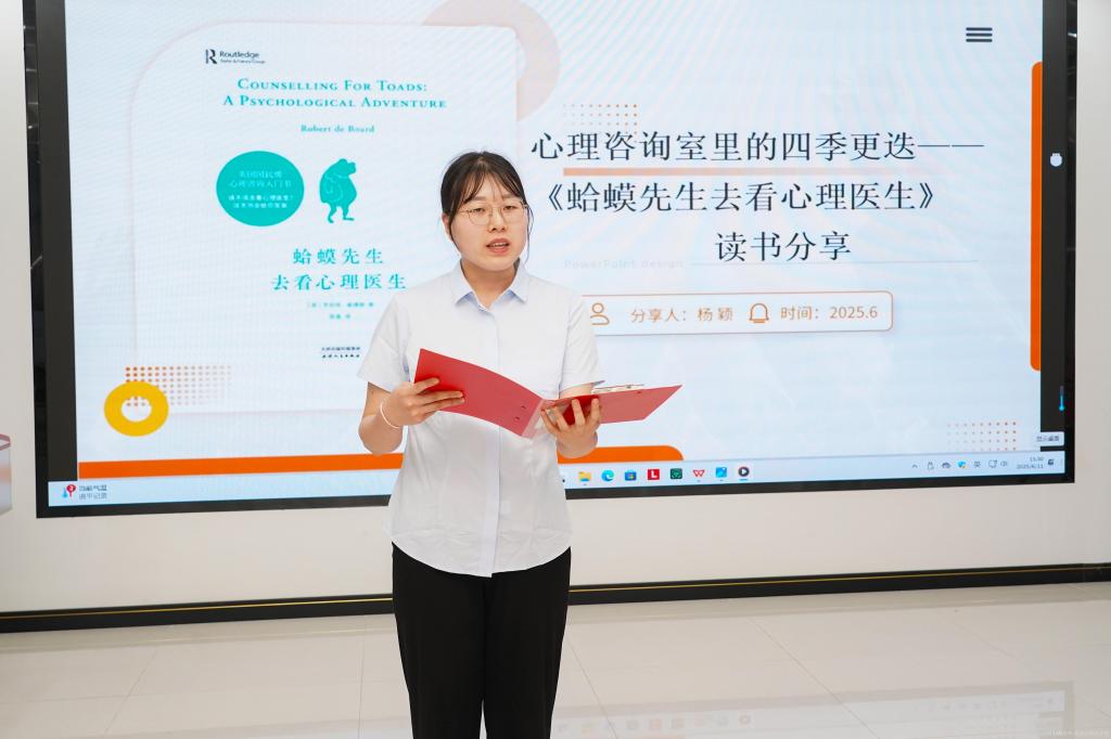 现场气氛紧张有序,选手们或慷慨激昂,或娓娓道来,每一个细节都牵动着评委和观众的心。一号选手董妍以史铁生《我与地坛》为载体,在沉静有力的叙述中探讨生命的坚韧与价值;二号选手武小元通过对《瓦尔登湖》的独到诠释,将梭罗的自然哲学与当代生态文明建设深刻联结;三号选手郭阳深情讲述《苦难辉煌》,将军旅生涯的信仰坚守与工会工作者的责任担当娓娓道来;四号选手黄晓璐借《敦煌本纪》绘就一幅文化守护的壮美画卷,展现莫高窟精神与教育使命的共鸣;五号选手杨颖则从《蛤蟆先生去看心理医生》出发,用温暖专业的语言剖析现代人的心理困境与成长。每位选手都以独特的视角和饱满的热情,赢得了现场观众的阵阵掌声。