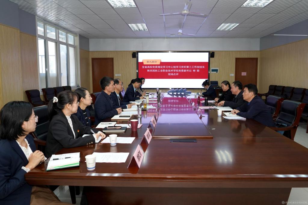 10月15日下午,陕西省高校党委理论学习中心组学习旁听第三工作组组长、陕西国防工业职业技术学院党委副书记杨聪带队旁听我校党委理论学习中心组10月集体学习会并作现场点评,工作组成员陕西国防工业职业技术学院党委宣传部部长张鑫、陕西能源职业技术学院党委宣传部部长巩青春列席旁听指导。学校党委书记伊逊智主持学习会并讲话。党委理论学习中心组成员参加学习会。