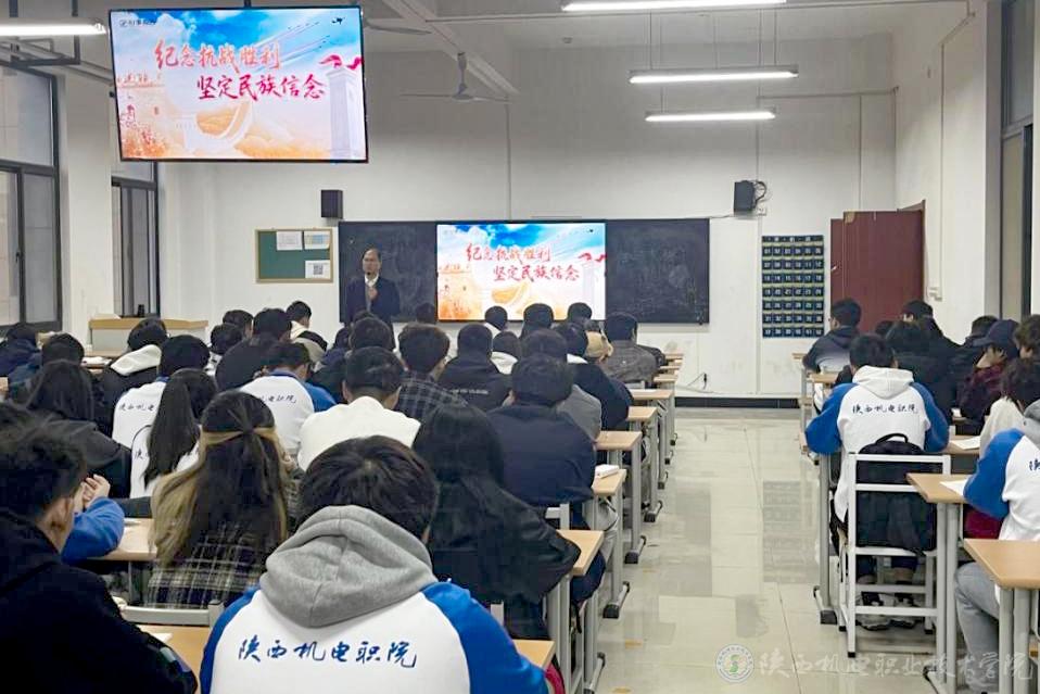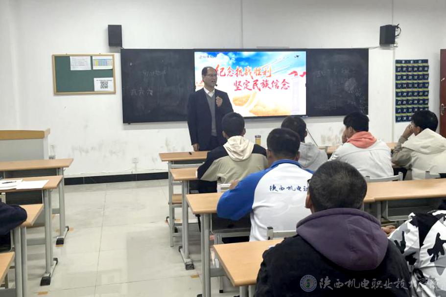 10月16日上午,BEAT365官网党委书记伊逊智在博学楼218教室为25电气技术3、25电气技术4合班学生讲授形势与政策课《纪念抗战胜利 坚定民族信念》专题内容。