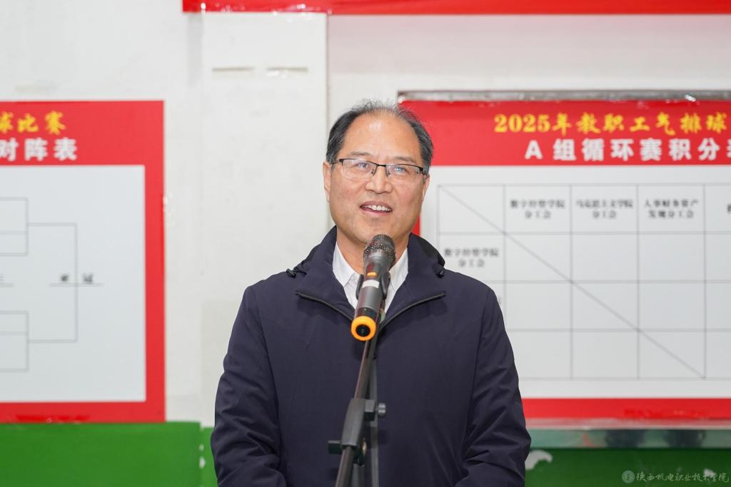 在全场热烈的掌声中,党委书记伊逊智宣布:“2025年教职工气排球比赛,现在开幕!”至此,这场初冬的激情赛事正式拉开战幕。