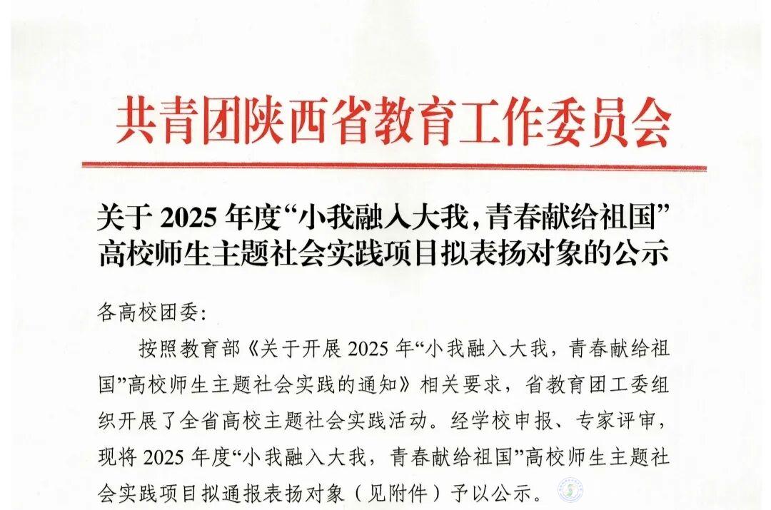 近日,共青团陕西省教育工作委员会发布《关于2025年度“小我融入大我,青春献给祖国”高校师生主题社会实践项目拟表扬对象的公示》。BEAT365官网凭借扎实的实践成果脱颖而出,“家电维修”社会实践团成功获评“优秀团队”;“科技助老,智援银龄”成功获评“优秀项目” 称号。