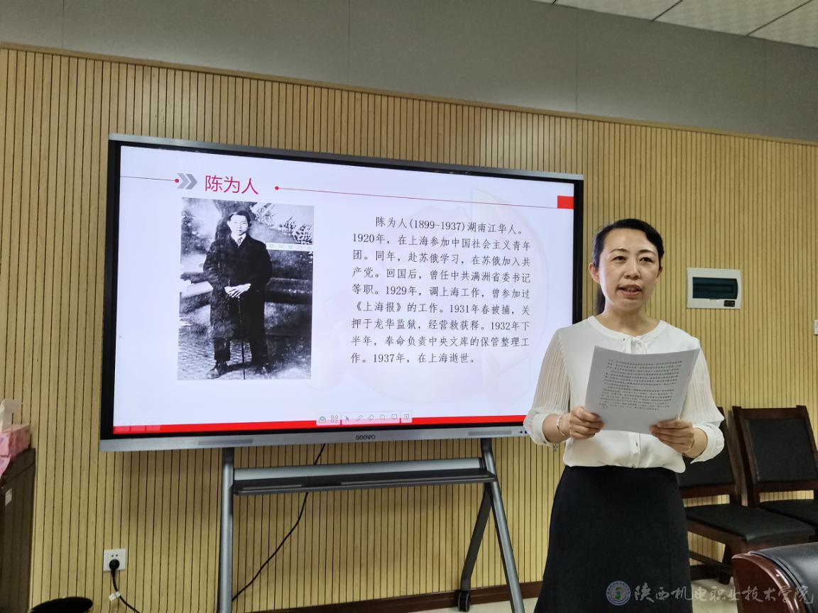 其次,康健同志向大家讲述了“用生命保护党的机密——陈为人”的故事。张玉琼同志向大家讲述了“寻着光,成为光—陈延年”的故事。两位同志动情的讲述让在场所有的党员思想上受到了深刻洗礼,感受到今天的幸福生活来之不易。随后,曹丹凤和屈娜两位同志作了重点点评。曹丹凤同志结合自身实际,对两位伟人的事迹进行了点评,认为优秀的共产党员是革命的中坚力量,作为中共党员,要弘扬革命先辈艰苦奋斗、求真务实的精神,增强责任感和使命感。屈娜同志在点评中几度哽咽,她表示作为新时期共产党员,要常温革命往事,铭记革命先烈,牢记我们党发展壮大的艰辛历程,以自己的实际行动践行中国共产党员的使命,弘扬正气,永葆共产党员的先进性。