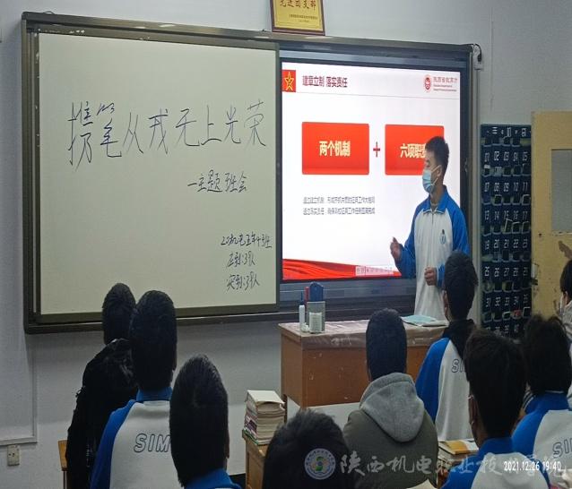 智能制造学院20机电五年4班在第一教学楼411教室组织召开了“携笔从戎 无上光荣”的主题班会,由辅导员李小曼老师主持。邓承杰同学对高校学生应征入伍有关政策进行了宣讲,李小曼就我校征兵工作的具体要求和措施进行了说明。王建斌在旁听后指出,征集大学生入伍,是新形势下提高提高部队兵源素质、加强国防和军队现代化建设的重大举措,有意向献身祖国国防事业的同学们应积极踊跃报名,也希望全体同学脚踏实地,努力学习,不断提高综合素质,为祖国建设贡献自己的力量。