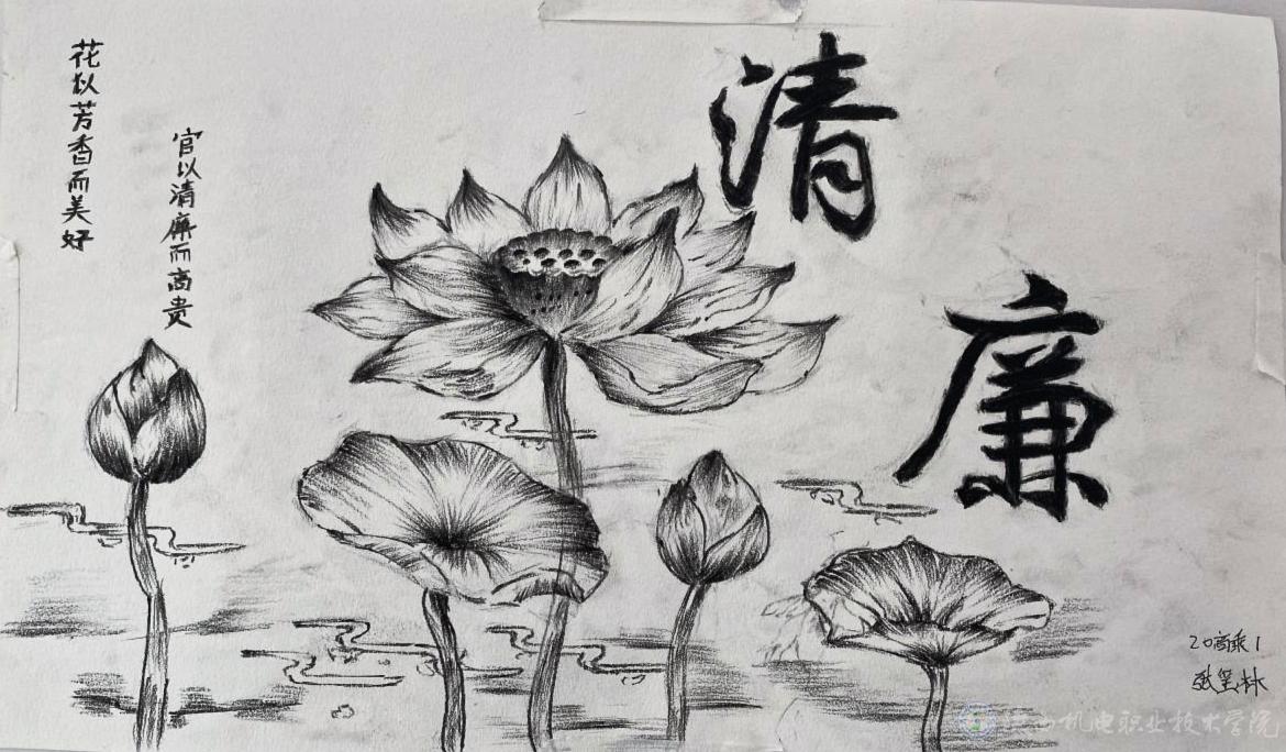 本次展览是经管与艺术学院2022年廉洁文化宣传教育月的重要活动之一,目的在于提升校园廉洁文化建设内涵,营造崇尚廉洁、风清气正的教书育人环境。参展作品全部由我院师生利用业余时间创作,内容丰富、寓意深刻,既有书写廉政内涵的诗词,也有象征清正廉洁的荷花,生动地向全院师生传播着廉洁文化。