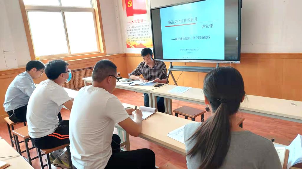 2022年5月30日下午,经管与艺术学院党支部书记孟发军为全体党员讲了一堂题为《践行廉洁准则,坚守四条底线》的廉洁党课。