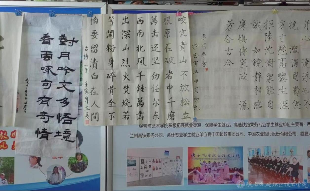 为扎实有效地开展我校廉洁文化宣传教育月活动,不断加强基础部党支部党风廉政建设,树立廉洁从教、服务学生、以文倡廉、以廉化人的清风正气,5月31日,基础部党支部在宝福路校区举办廉政书画展活动。此次书画展共展出作品45幅,既有廉诗、廉对、廉政格言警句,也有借物咏志的山水花鸟画作。作品均以廉政廉洁为主题,内容丰富、风格独特、题材多样。