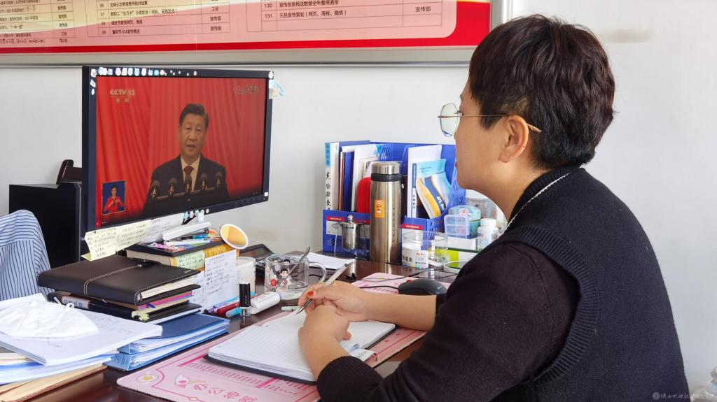 支部党员在工作岗位上收看中国共产党第二十次全国代表大会开幕会