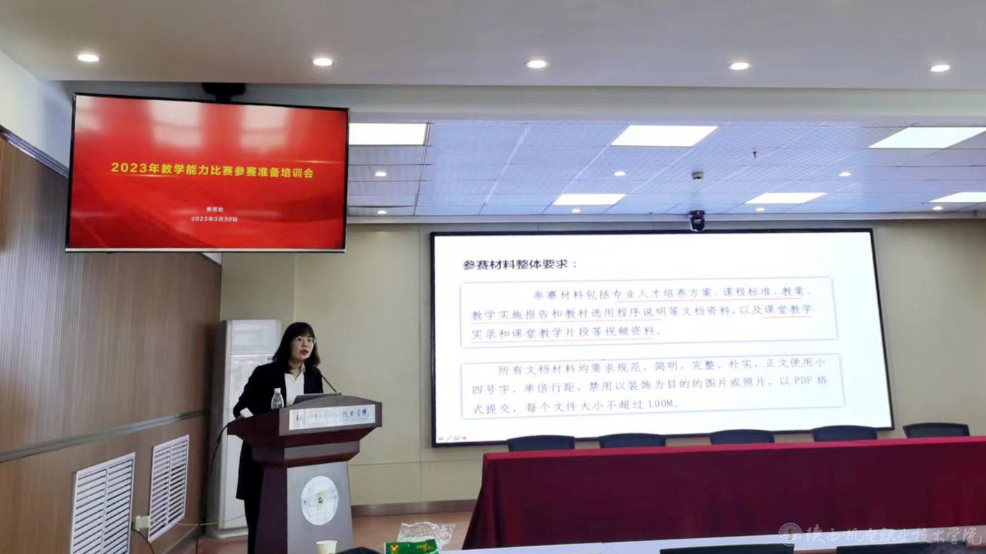 魏雅倩老师结合以往获奖参赛作品,从教学能力比赛考查方向、参赛步骤、文件解读、团队组建、内容确定、材料准备等方面进行了分析,深度剖析了教学设计的思路方法、教学实施报告的撰写要求,深入剖析了比赛选题、专业人才培养方案、课程标准、教案、教学实施报告、课堂实录视频、评分指标等参赛环节注意事项,给老师们备战教学能力比赛提供了实战性极强的借鉴经验。培训结束后,与会老师纷纷表示受益匪浅。
