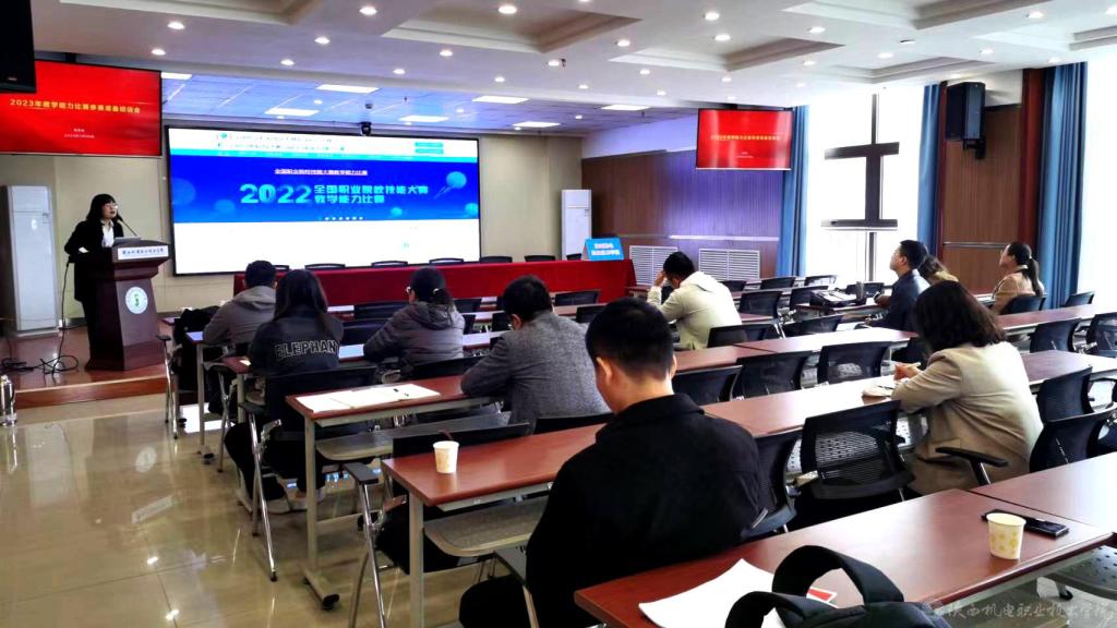 为进一步提高我校教师教学能力和信息化教学素养,提前布局2023年陕西省教师教学能力大赛,助推教育教学质量整体提升,3月30日下午,我校分别在宝福路校区汽车机电大楼视频会议室和蟠龙校区博学楼111会议室举行了教师教学能力比赛备赛培训会。本次备赛培训会邀请了北京超星集团超星职业教育研究院高级讲师魏雅倩到校做方案剖析与备赛策略专题培训。宝褔路校区会议由马克思主义学院副院长王枢主持,蟠龙校区会议由基础部(体育部)部长满春燕主持。教务处、参赛团队教师、近五年新进教师参加。