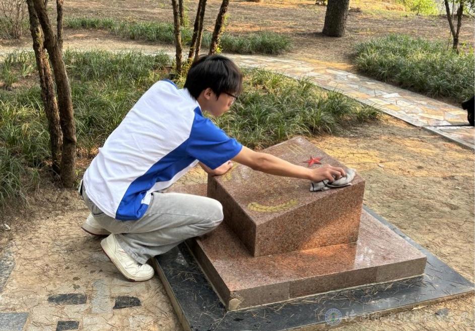 最后,大家有序参加祭扫。用双手为先烈擦洗墓碑,瞻仰着他们的英勇事迹,打扫周围环境,表达敬仰思念之情。
