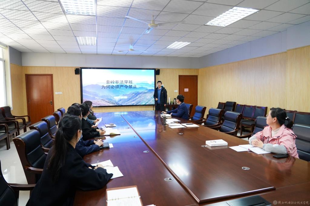 李明从“什么是非法穿越”“为什么要禁止非法穿越”“向非法穿越说‘不’”三个层面以《秦岭非法穿越为何必须严令禁止》为题讲授了专题党课。通过近年来的典型案例,剖析非法穿越的危害,敲响“绿水青山就是金山银山”的警钟。他要求,全体党员要牢固树立习近平生态文明思想,牢记“国之大者”,做好秦岭生态卫士的示范者、宣传者、监督者。