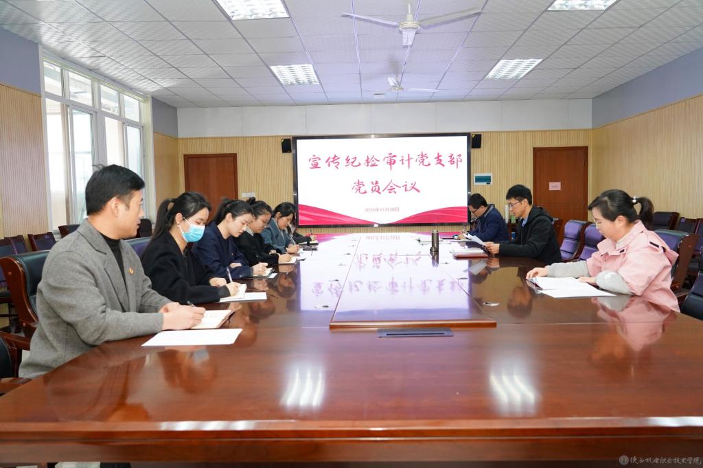 为进一步学习宣传贯彻党的二十届四中全会精神,全面总结2025年度工作,激励教职工不断增强使命担当,11月28日下午,宣传纪检审计党支部在蟠龙校区图书馆二楼会议室召开支部党员会议,党支部书记李明主持会议并讲话,全体党员参加会议。